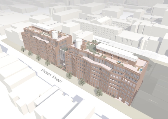 A layered massing study, created by Taller Frida Escobedo, was used to develop Bergen's fundamental shape, form, size, and envelope.