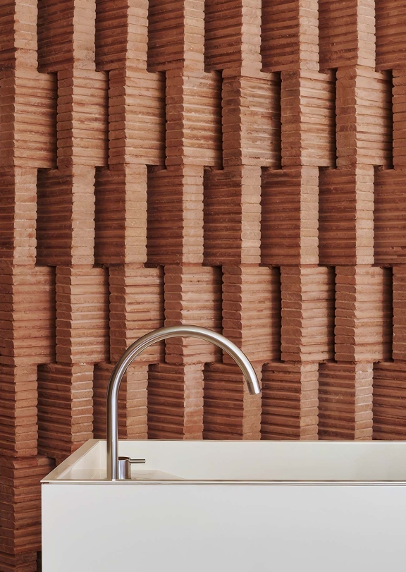 The quaint residential block of Bergen Street welcomes Taller Frida Escobedo’s first-ever condominium residence. Driven by neighborhood context, the facade takes inspiration from the quintessential bay window brownstones adorning the neighborhood, interpreting the geometry and materiality in a contemporary and intentional manner. Access to the neighborhood is available from both Dean Street and Bergen Street. The East and West wings look out to spacious landscaped outdoor gardens. Composed from custom hand-made geometric modules, a humble yet elegant form, the facade promotes the philosophy of complexity in simplicity.